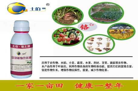 应用于农作物、水稻、小麦、蔬菜、水果、药材、芽菜、菌菇等农作物。本产品作用于叶面后,利用作物自身的生物转换功能,提高它们的富铬含量。促进作物生长,增强作物抗病性,提量,减少作物危害。